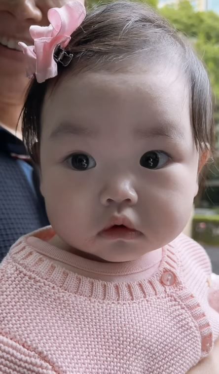 특히 박수홍의 이목구비를 쏙 빼닮은 딸은 놀이터에서 놀고 있는 언니, 오빠들을 뚫어져라 쳐다보고 있다. 핑크색 가디건에 핑크색 머리핀을 꽂은 러블리 비주얼이 인상적이다.