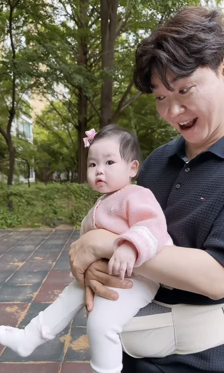 공개된 영상 속 박수홍은 힙시트에 딸을 앉혀두고 산책에 나선 모습. 박수홍은 딸의 사랑스러운 모습에 눈을 떼지 못하다 함박미소를 짓는다.