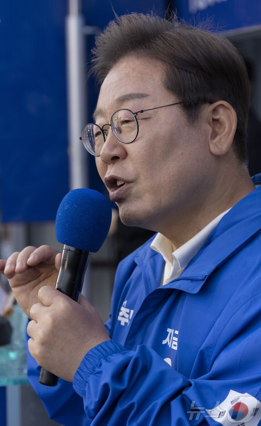 이재명 더불어민주당 대통령 후보가 '이순신 호국 벨트' 유세차 15일 전남 광양시 전남드래곤즈구장 북문을 찾아 지지를 호소하고 있다. (공동취재) 2025.5.15/뉴스1 ⓒ News1 안은나 기자 |