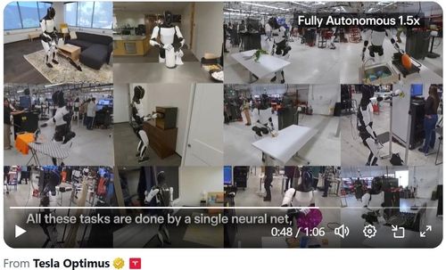 이는 옵티머스가 현재 1인칭 시점으로 입력된 영상을 학습해 인간의 동작을 모방할 수 있으며 머지않아 인터넷에 있는 무작위 동영상을 보는 것만으로도 관련 동작을 학습해 따라 할 수 있게 된다는 뜻으로 풀이된다. 옵티머스가 학습해 수행할 수 있는 작업이 짧은 시간 내에 급격히 늘어날 수 있게 된다.