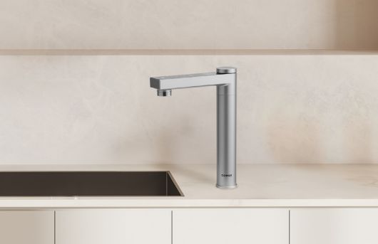 제품은 싱크대 하부에 본체를 설치하고 위에는 슬림한 파우셋만 노출되는 빌트인 구조로 주방 공간을 한층 넓게 활용할 수 있다. 또한 180도 회전이 가능한 파우셋은 공간에 제약 없이 어떤 위치에서도 물을 받을 수 있어 편리하다.