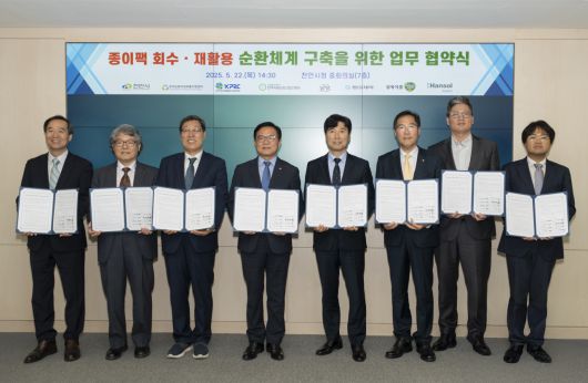 한솔제지는 천안시, 남양유업, 동아제약, 삼육식품, 한국포장재재활용사업공제조합, 한국자원순환산업인증원, 한국순환자원유통지원센터 등과 함께 '종이팩 회수·재활용 순환체계 구축'을 위한 업무협약을 체결했다고 25일 밝혔다.