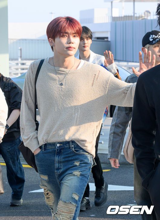 제로베이스원 박건욱이 출국장으로 향하며 인사를 하고 있다. 2025.05.25 /sunday@osen.co.kr