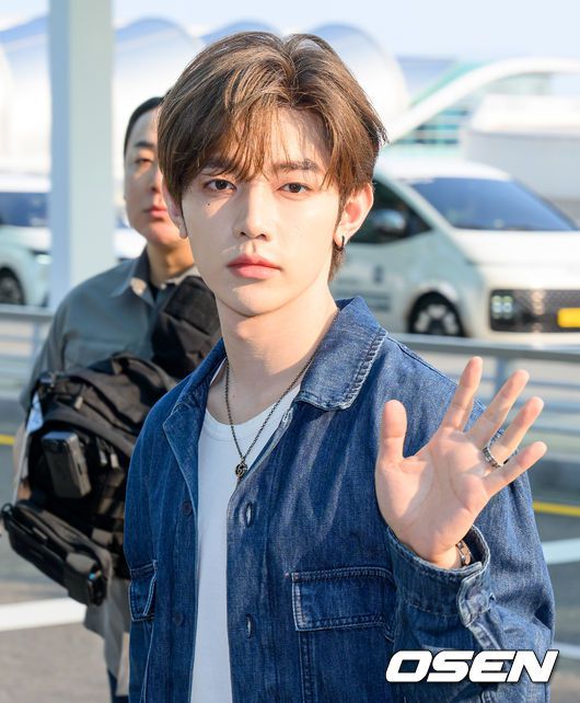 제로베이스원 장하오가 출국장으로 향하며 인사를 하고 있다. 2025.05.25 /sunday@osen.co.kr