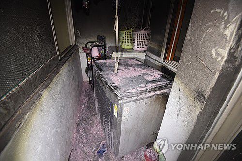 (대전=연합뉴스) 이주형 기자 = 한밤중 대전의 한 아파트에서 리콜(시정조치) 대상인 김치냉장고에서 불이나 베란다 가재도구 등을 태웠다.