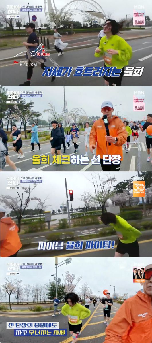 24일 오후 방송된 MBN ‘뛰어야 산다’에서는 ‘선셋 마라톤’ 10km 대회에서 ‘뛰산 크루’ 16인이 기록 단축 미션에 도전하며 생존 레이스를 펼치는 현장이 공개됐다.