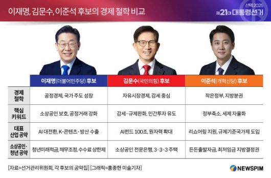 [그래픽] 이재명, 김문수, 이준석 후보의 경제 철학 비교