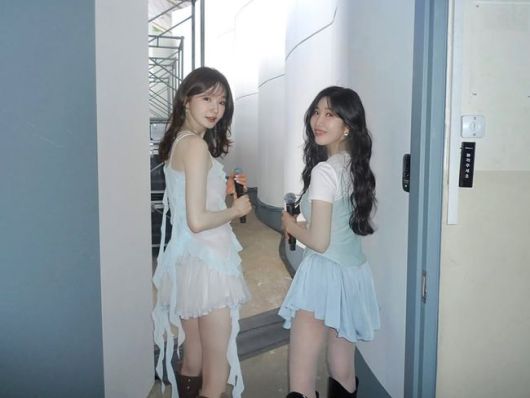 축제를 준비하기 전부터 강민경은 설렘 가득한 모습이다. 대기실에서 이해리와 함께 사진을 찍으면서 축제 준비를 하고 있는 모습이 인상적이다. 이 가운데 30대 중반이라는 나이가 믿기지 않는 미모와 피부로 감탄을 자아냈다.