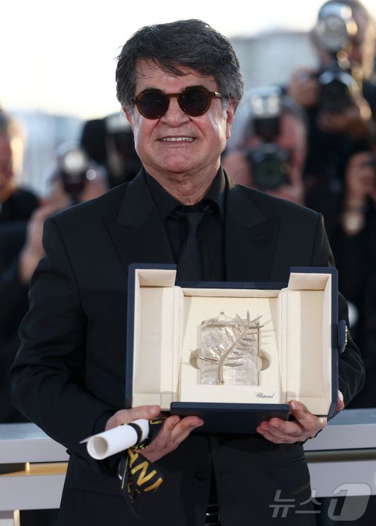 (칸 로이터=뉴스1) 우동명 기자 = 이란 반체제 영화감독 자파르 파나히가 24일(현지시간) 프랑스 칸에서 열린 제78회 칸 국제영화제서 영화 '잇 워스 저스트 언 액시던트'로 최고 작품상인 황금 종려상을 수상하고 있다. 2025.05.25 ⓒ 로이터=뉴스1