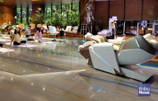 바디프랜드 본사에서 진행된 '헬스케어로봇X강하나' 전신 스트레칭 클래스. ⓒ바디프랜드 |