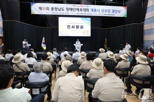(계룡=뉴스1) 박찬수 기자 = 계룡시가 23일 계룡문화예술의전당 다목적홀에서 제31회 충청남도장애인체육대회 출전 선수단 결단식을 개최했다.