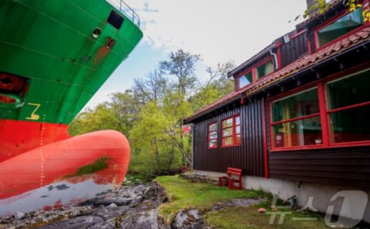 노르웨이 해안가에 위치한 한 주택의 앞마당에 길이 135m의 초대형 선박이 좌초하는 위험한 일이 발생했다.