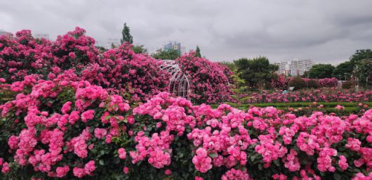 25일 광양시에 따르면 백운산에서 발원한 서천변의 장미공원(1만 3000㎡ 규모)에는 56종 2만 2000그루 장미가 각양각색 화려한 자태로 향기를 뿜어내며 장관을 이루고 있다. 특히 고운 선율과 다채로운 색채를 자랑하는 서천음악분수가 시원한 물줄기로 한낮의 더위를 식히고, 밤의 낭만을 더해 일상에 지친 관람객들을 위로하고 있다.