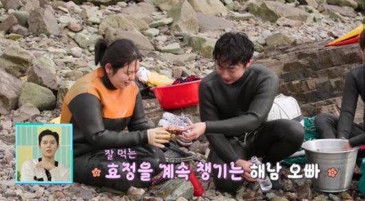 그 사이 효정은 해남에게 잠수를 배우며 고군분투했다. 그러나 해남의 비주얼과 스윗한 모습에 효정의 광대는 좀처럼 내려오지 않았다. 특히 해남은 효정을 살뜰히 도우며 자상한 면모를 드러냈고, 효정은 "우리 집안에 볼 수 없는 인물이다"라며 그의 다정한 성격에 감탄했다.
