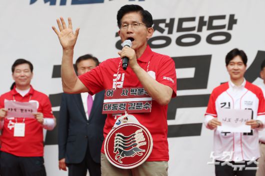 김문수 국민의힘 대선 후보가 지난 22일 경기 광명시 철산로데오거리에서 유세를 하고 있다. 황진환 기자 |
