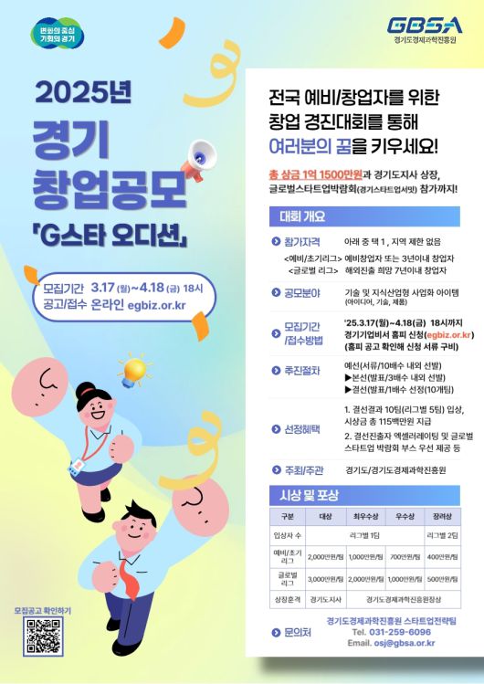 경기도와 경기도경제과학진흥원은 ‘2025 G-스타 오디션’에 777개팀이 참여를 신청, 지난해 421개팀보다 84.5% 증가했다고 25일 밝혔다.