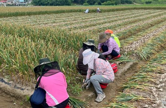 ◆유어면, 마늘 수확철 맞아 농촌일손돕기 나서