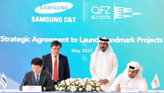 이날 삼성물산은 카타르 수도 도하에 위치한 라스 부폰타스(Ras Bufontas) 비즈니스 이노베이션 파크에서 카타르 QFZA와 향후 카타르 내 지속가능한 인프라 사업의 공동 투자와 기술 협력에 대한 업무 협약을 체결했다.