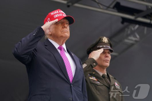 도널드 트럼프 미국 대통령이 24일(현지시간) 미국 뉴욕주 웨스트포인트 육군사관학교에서 열린 졸업식에서 거수경례를 하고 있다. 2025.05.24 ⓒ 로이터=뉴스1 ⓒ News1 류정민 특파원 |