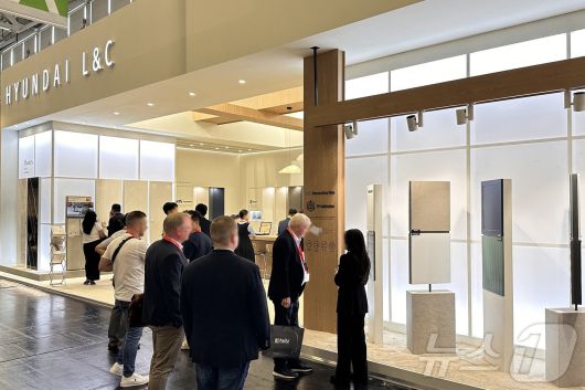 (서울=뉴스1) = 현대백화점그룹 계열 종합 건자재 기업 현대L&C가 25일(현지시간) 독일 쾰른에서 열린 ‘인터줌(Interzum) 2025’에 참가했다고 밝혔다. 인터줌은 2년마다 열리는 세계 최대 규모의 가구 기자재 전시회다. 사진은 관람객들이 '현대L&C' 부스를 방문해 살펴보는 모습. (현대백화점그룹 제공. 재판매 및 DB금지) 2025.5.25/뉴스1