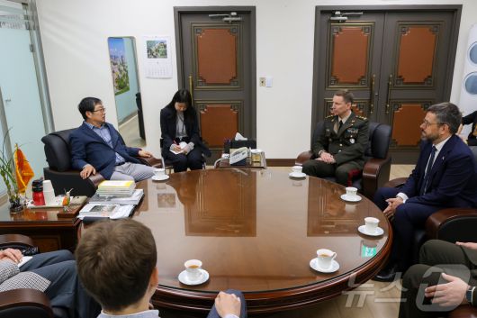 (서울=뉴스1) = 백승주 전쟁기념사업회장이 지난 24일 서울 용산구 전쟁기념관을 방문한 카스파르스 푸단스(Kaspars Pudāns) 라트비아 국방참모총장과 환담을 하고 있다. (전쟁기념사업회 제공. 재판매 및 DB금지) 2025.5.25/뉴스1 Copyright ⓒ 뉴스1. All rights reserved. 무단 전재 및 재배포, AI학습 이용 금지.