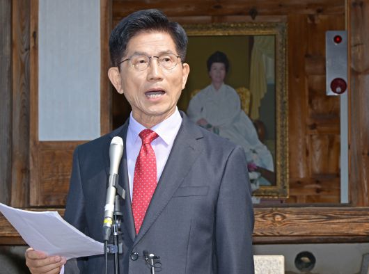 김문수 국민의힘 대선 후보가 25일 충북 옥천군 육영수 여사 생가를 방문해 둘러본 후 현안 관련 입장 발표를 하고 있다. /김지호 기자 |