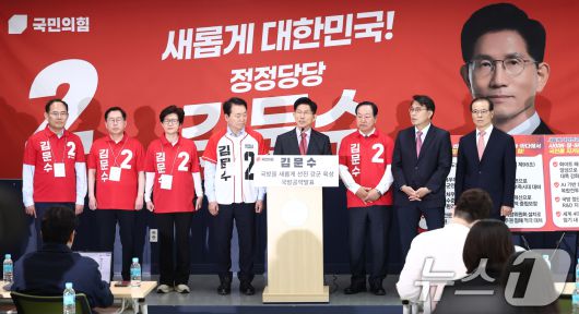 (계룡=뉴스1) 김민지 기자 = 김문수 국민의힘 대통령 후보가 25일 오전 충남 계룡시 계룡 병영체험관에서 "국방을 새롭게, 선진 강군 육성" 국방 공약 발표를 하고 있다. 2025.5.25/뉴스1kimkim@news1.krCopyright ⓒ 뉴스1. All rights reserved. 무단 전재 및 재배포, AI학습 이용 금지.