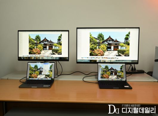 지난 21일(현지시간) 방문한 벤큐 대만 타이베이 본사의 모니터 데모룸. 배치된 'MA시리즈' 모니터에 맥북을 연결하자 자동으로 모델명을 인식, 색상 프로파일을 불러온다. 불과 몇 초 뒤 눈으로도 쉽게 다른 것을 알 수 있었던 양 모니터 간 색상이 구분하기 어려울 정도로 맞춰졌다. 벤큐가 집중해왔던 전문가 모니터의 색감 고도화와 애플 디바이스의 자연스러운 연동이 이뤄진 순간이다.