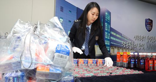 관세청이 지난 3월18일 인천시 중구 운서동 인천공항세관 특송물류센터에서 적발된 마약류 성분이 함유된 불법 의약품을 공개하고 있다. 공항사진기자단 |