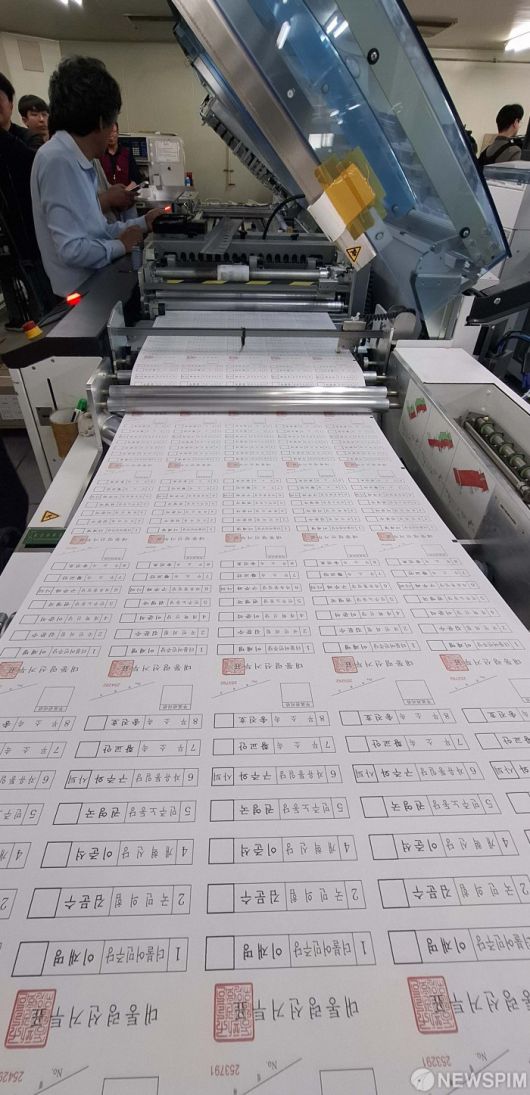 [안양=뉴스핌] 김학선 기자 = 21대 대통령선거를 9일 앞둔 25일 경기 안양시의 한 인쇄업체에서 관계자가 투표용지의 인쇄 상태를 검수하고 있다. 2025.05.25 yooksa@newspim.com