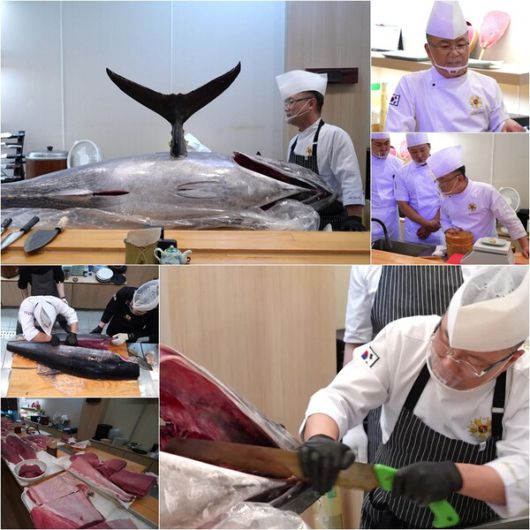 대형 톱으로 참치의 머리부분 자르기가 시작되자 안유성은 막내 직원에게 “가장 비싸고 맛있는 부위는 아가미 부위로 가마살이야”라며 “이건 초밥 한 점에 3만 5000원에서 4만 원이야”라며 현란한 단칼 해체를 선보여 감탄을 자아낸다.