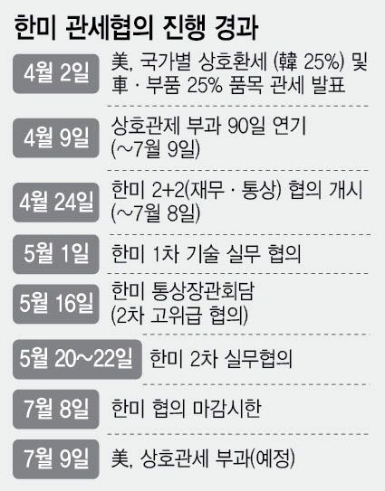 전문가들은 대선 이후 민감 사안에 대한 국내 조율에 필요한 시간을 고려했을 때 25% 상호관세 부과가 예고된 7월9일 이전까지 협의를 마치겠다는 기존 계획에는 차질이 불가피할 것으로 보고 있다.