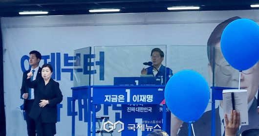 25일 이재명 더불어민주당 대선 후보가 지지를 호소하고 있다(사진/백승일 기자) |