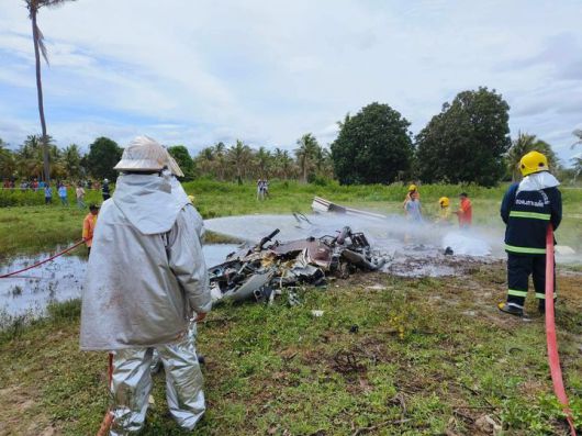 [서울=뉴시스] 25일(현지 시간) 방콕포스트 등에 따르면 전날 오후 1시께 태국 방콕 남쪽 쁘라쭈압키리칸주 무앙 지역에서 경찰 헬기가 추락했다. (사진=태국 소방당국 페이스북 갈무리) 2025.05.25. *재판매 및 DB 금지 |