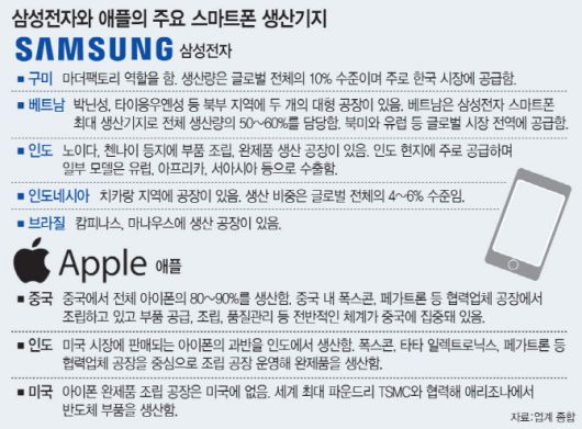 삼성·애플 모두 미국 생산기지 없어