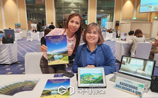 (태국=국제뉴스) 유지현 기자 = 8일 태국 푸켓 로얄푸켓시티호텔에서 열린 '제2회 트래블페어 in 푸켓' 테이블톱 행사 중 카타통 골프 리조트 & 스파 상담 테이블.