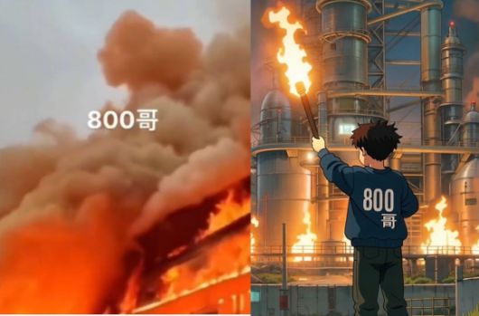 지난 20일 발생한 중국 쓰촨성 핑산현 방직공장 방화 사건과 관련해 방화범인 공장 직원의 임금 체불 문제를 거론한 인터넷 영상과 인공지능 생성 이미지. 엑스 캡처 |