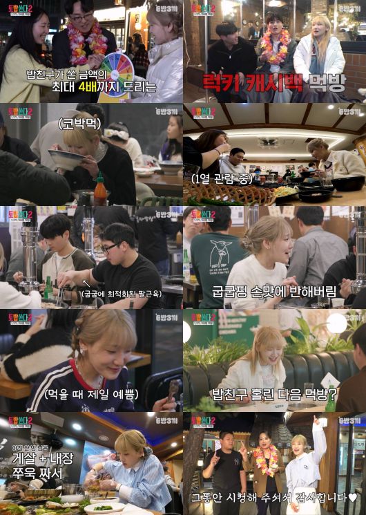 '토밥쏜다2'는 본격 밥탈출 게임 먹방 예능이다. 먹방 유튜버 히밥이 길에서 만난 시민들에게 “밥을 사달라”고 요청하며 ‘밥친구’를 구하는 미션에 나섰다. 히밥에게 밥을 사준 ‘밥친구’에게는 원금회수는 물론, 3~4배의 ‘럭키 캐시백’까지 가능한 룰렛 기회가 주어져 심장을 쫄깃하게 만들었다.