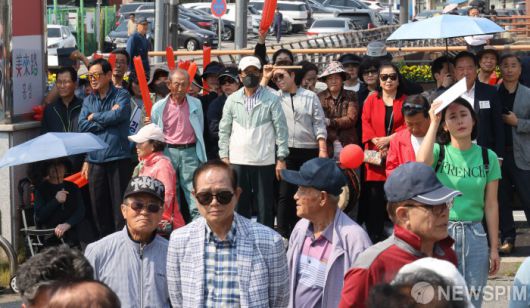 [홍성=뉴스핌] 최지환 기자 = 25일 오후 충남 홍성군 홍성천 복개주차장에서 열린 김문수 국민의힘 대선 후보의 “기적으로 만들 진짜 홍성” 집중유세에서 유권자들이 김 후보의 연설을 지켜보고 있다. 2025.05.25 choipix16@newspim.com