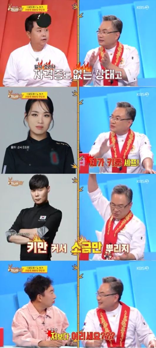 안유성은 "정호영 셰프는 일단 자격증도 없는 상태고 정지선 셰프는 제가 방송에서 키운 셰프다. 최현석은 키만 커서 소금만 뿌린다"고 디스를 했다.