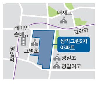 재건축을 통해 명일동 최대 규모 단지로 거듭나게 되는 삼익그린2차는 둔촌주공에 이은 동남권 최대 정비사업지로 꼽힌다. 명일동 중심부에 자리한 입지적 장점도 주목된다. 지하철 5호선 명일역과 고덕역을 도보로 이용할 수 있고 8호선 연장 구간인 암사역사공원역도 가까워 강남 접근성이 우수하다.
