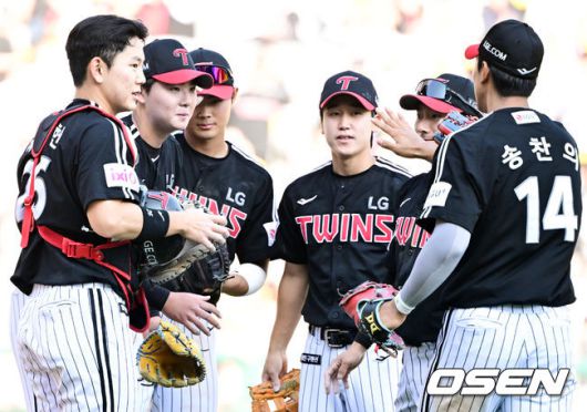 [OSEN=인천, 조은정 기자]프로야구LG 트윈스가 SSG 랜더스 상대로 위닝에 성공했다. LG는 25일 인천 SSG랜더스필드에서 열린 2025 KBO리그 SSG와 경기에서 9-3으로 승리했다.선두 LG는 이날 승리로 33승 1무 18패가 됐다. SSG는 25승 1무 25패로 승률 5할이 됐다. LG가 승리를 기뻐하고 있다. 2025.05.25 /cej@osen.co.kr