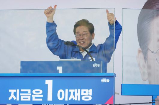 이재명 더불어민주당 대선 후보가 25일 충남 당진시 당진전통시장 입구에서 열린 유세에서 시민들에게 지지를 호소하고 있다. 2025.05.25. [당진=뉴시스] |