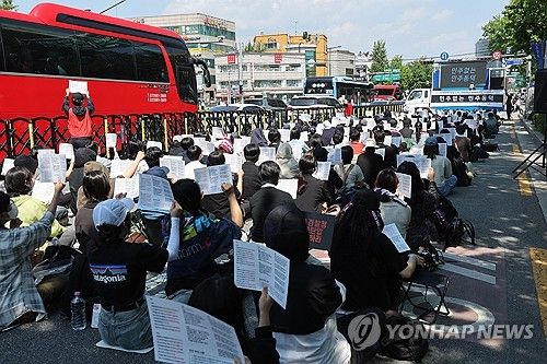 동덕여대 재학생 모임인 '민주 없는 민주동덕'은 25일 오후 서울 종로구 서울경찰청 인근에서 집회를 열고 교내 점거 농성을 벌인 학생들에 대한 수사 중단을 촉구하고 나섰다.