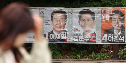 서울 마포구 공덕오거리 인근에 걸린 제21대 대선 후보 벽보. [사진=연합뉴스] |