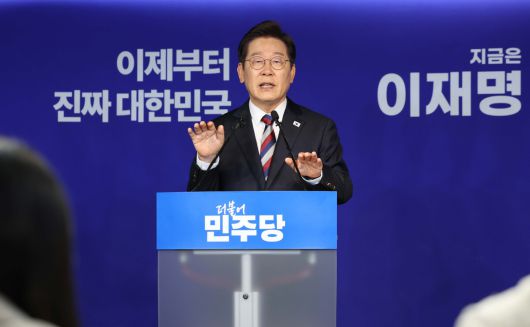 더불어민주당 이재명 대선후보는 25일 서울 영등포구 민주당 중앙당사에서 기자간담회를 갖고 "이번 대선은 단순한 정권 교체가 아니다. 민주공화국 대한민국을 바로 세우는 선거이다"며 "분열과 갈등의 시대를 끝내고 '통합의 시대'를 여는 전환점이다"고 말했다.