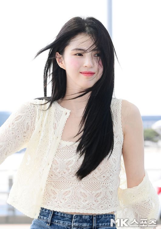 이날 한소희는 아이보리 컬러의 시스루 니트 크롭과 데님 와이드 팬츠로 꾸안꾸 공항패션을 선보이며 등장부터 시선을 집중시켰다.