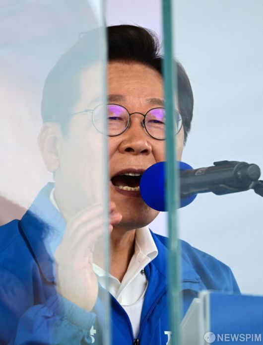 [당진=뉴스핌] 김학선 기자 = 이재명 더불어민주당 대선 후보가 25일 오후 충남 당진전통시장 유세장에서 지지를 호소하고 있다. 2025.05.25 yooksa@newspim.com
