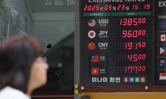 23일 서울 중구 명동 한 환전소 전광판에 환율이 표시돼있다. 연합뉴스 |