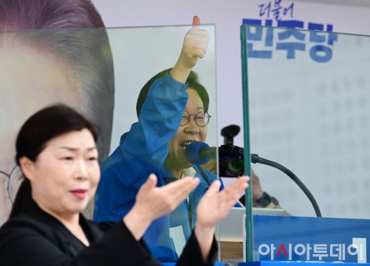 아시아투데이 (당진) 이병화 기자 = 이재명 더불어민주당 대통령 후보가 캐스팅보트인 충청권 공략에 나선 25일 충남 당진전통시장을 찾아 지지를 호소하고 있다. |